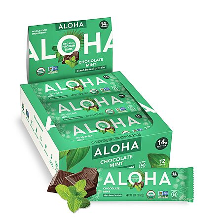 ALOHA Organic Plant Based Protein Bars, Chocolate Mint, 1.98 Oz (Pack of 12)~$21.73 With S&S @ Amazon