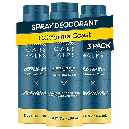 3-Pack 3.4-Oz Oars + Alps Spray Men's & Women's Aluminum Free Deodorant for $22 - 5% when you checkout with Subscribe & Save =
