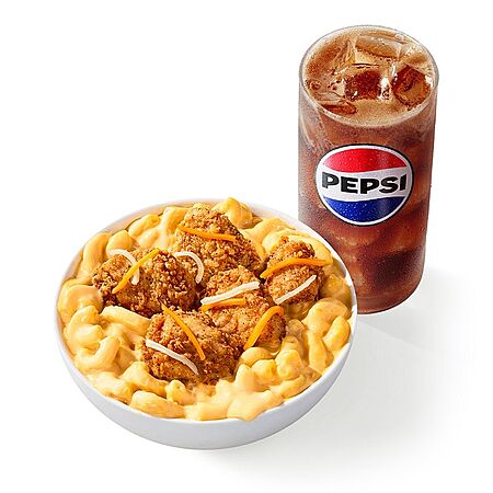 Combo comes with a medium drink and a Mac & Cheese Bowl. Up size to a large drink for a small additional cost.
