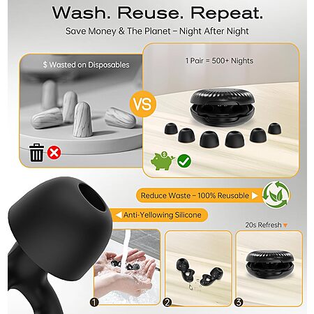 HEYE via Amazon [amazon.com] has LC-dolida Reusable Noise Reduction Silicone Earplugs for Sleeping w/ Case & 8 Eartips (Black) on sale for $4.99 when you apply promo code 2VEL3UMK at checkout. Shipping is free w/ Prime or on orders $35+.