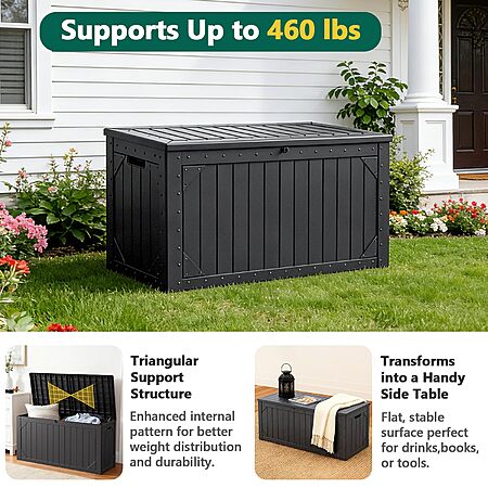 • Extra Seating - The strengthened lid allows this deck box to function as a stable bench, supporting up to 460 lbs.