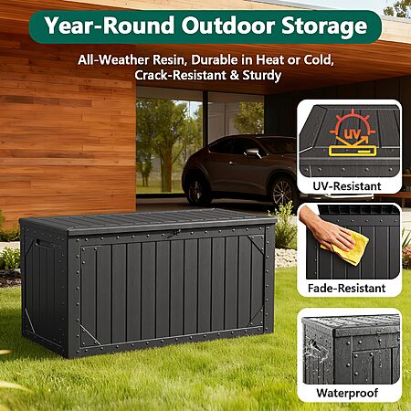 100 Gallon Outdoor Storage Box, Waterproof Resin Deck Box Organizer for Patio Cushion Storage, Lockable $59.99 + Free Shipping