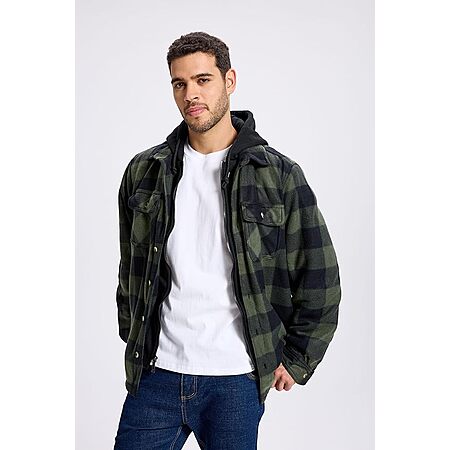 Men's Cotton Plaid Shirt Jacket Full Zip Fleece Flannel Sherpa Lined Hoodies Heavyweight - various colors and sizes - amazon $9.99