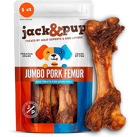 5 Pack Jack&Pup Single Ingredient Jumbo Pork Femur Bones (Rawhide Free) $17.39 + Free Shipping w/ Prime or orders $35+