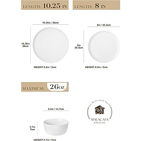 4-Piece 26-Oz Malacasa Porcelain Soup Bowl Set $12.99, 18-Piece Porcelain Plates & Bowls Dinnerware Sets (Service for 6) $47.99 + FS w/ Prime or on $35+