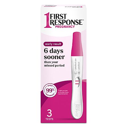 - Providing a quick, precise reading five days sooner, First Response pregnancy test delivers 99 percent accuracy every time. Specially-designed to provide quick results, each First Response pregnancy test produces results within minutes of providing a sample. The simple, one-step test is easy-to-read and easy-to-use. Kit contains three First Response pregnancy test sticks. Selling pregnancy test brand; With first to detect technology, first response is the only at-home pregnancy test that detects pregnancy 6 days sooner than your missed period; 99% accuracy from the day of the expected period; This item may be eligible for FSA and HSA reimbursement. For any questions you may have regarding FSAs or HSAs, please browse our Faq.;