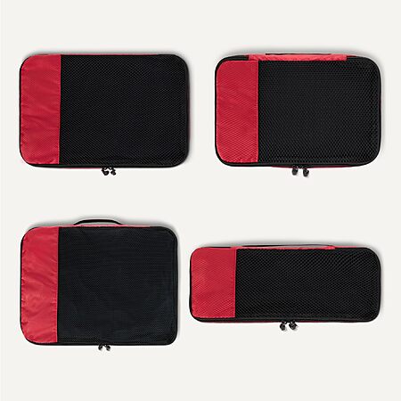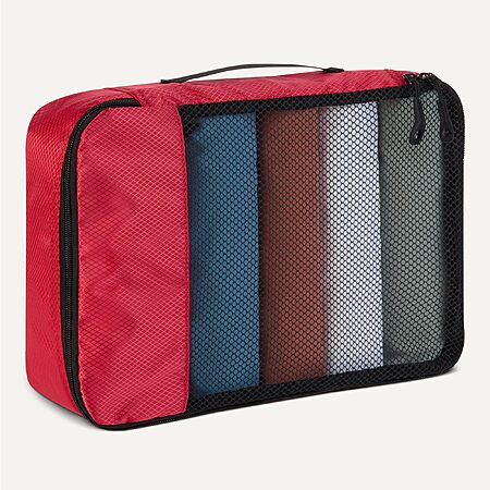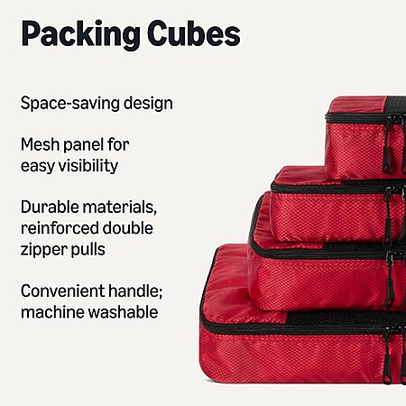 Amazon Essentials 4-Piece Packing Cubes Travel Accessories Set, Luggage Organizer, Double Zipper, Mesh Top, Space-Saving Suitcase Organizer, Small/Medium/Large/Slim, Red $6.93