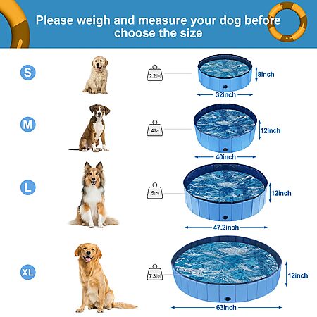 40"L x 40"W x 12"H YSJILIDE Portable Dog Pool (Blue) $13.49 + Free Shipping w/ Prime or on $35+