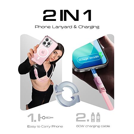 Lisen Crossbody Cell Phone Lanyard Strap (Various Colors) w/ 60W USB C Cable $7