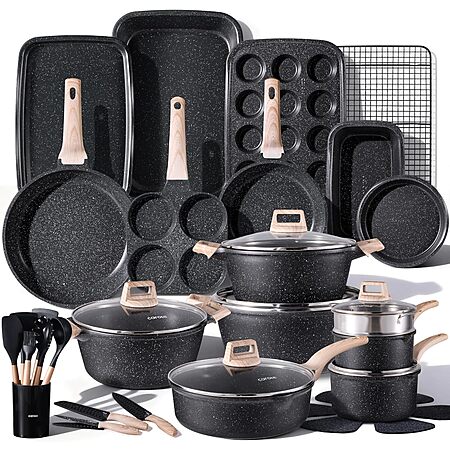 CAROTE 44pcs Pots and Pan Set Nonstick, Cookware Sets, Cooking Set Non Stick, Induction Cook Ware with Bakeware Set, Kitchen Knife Set $199.99