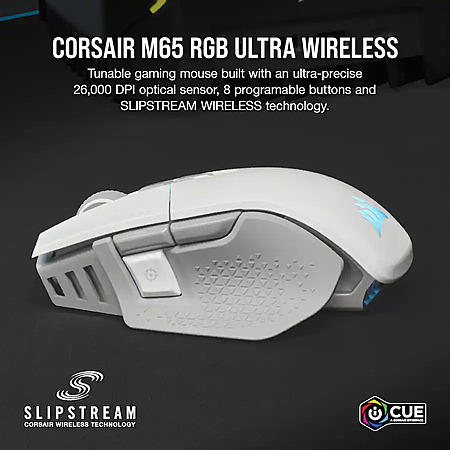 Model: Corsair M65 RGB Ultra Wireless Tunable FPS Gaming Mouse - Sub-1ms Slipstream Wireless Technology, 26,000 DPI Optical Sensor, Up to 120 Hours of Battery Life, 8 Programmable Buttons - White