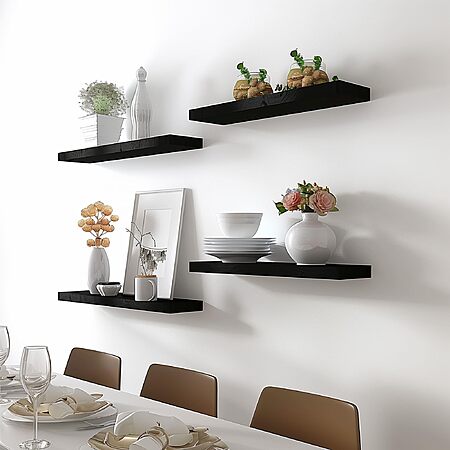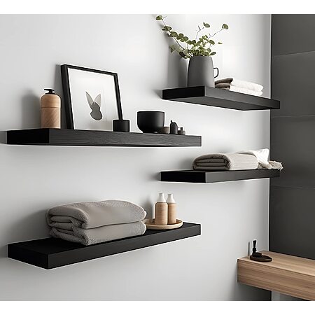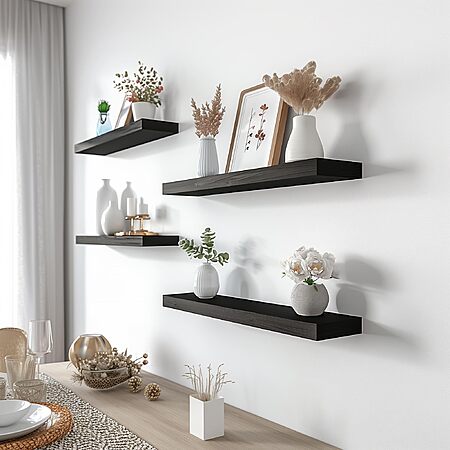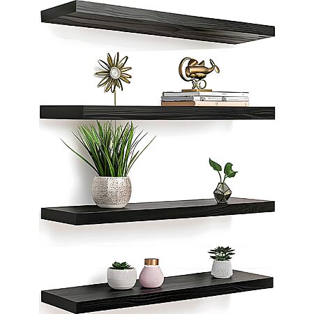 IKJZIZP via Amazon has 4-Pack YFYEO Black Wood Floating Shelves for $9.99. Shipping is free with Prime or on $35+ orders.