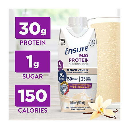Ensure Max Protein Shake, 30g Protein, French Vanilla, 11 fl oz, 12 Pack x2~$13.99 Each With Walmart Cash @ Walmart~Free Store Pickup Or Delivery With Walmart+~Must Buy 2!