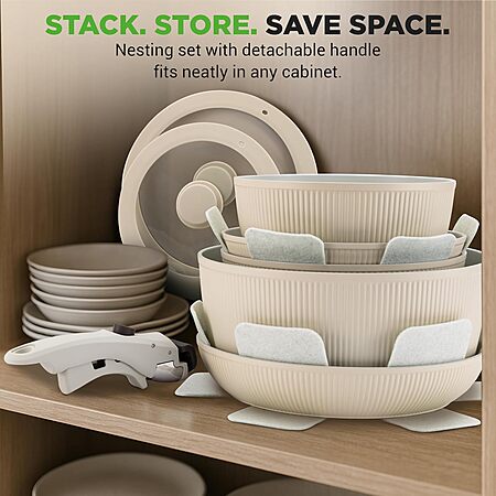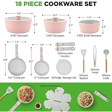 18-Piece NutriChef Ceramic Nonstick Cookware Set w/ Detachable Handles (Cream) $55.07 + Free Shipping