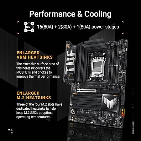 Model: ASUS TUF Gaming X870-PLUS WiFi AMD AM5 X870 ATX Motherboard, 16+2+1, 80A SPS Power Stages, DDR5, PCIe 5.0 Ready, Four M.2 Slots, Wi-Fi 7, 2.5Gb LAN, HDMI, USB4® 40Gbps, SATA 6 Gbps, USB 20Gbps Type-C