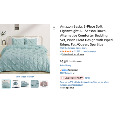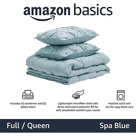 Amazon Basics 3-Piece Soft, Lightweight All-Season Down-Alternative Comforter Bedding Set, Full/Queen, Spa Blue. YMMV - Coupon Price $32.99