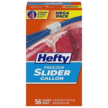Hefty Slider Freezer Kitchen Storage Bags, Gallon Size, 56 Count with MAX S&S + 15% coupon YMMV $5.32