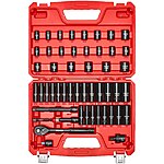 VEVOR 3/8 in Drive Impact Socket Set, 50 Piece, 6 Point Deep & Shallow Impact Sockets, SAE (5/16 in to 3/4 in) and Metric (8 to 22 mm) Sizes with 3 in & 6 in Extension Bars, Cr-V Steel, Carrying Case