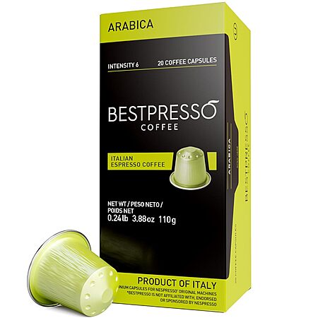 Bestpresso Coffee for Nespresso Original Machine 120 pods Certified Genuine Espresso Arabica Blend (Light Intensity), $17.99 Clip Q & S&S YMMV on Q @ Amazon