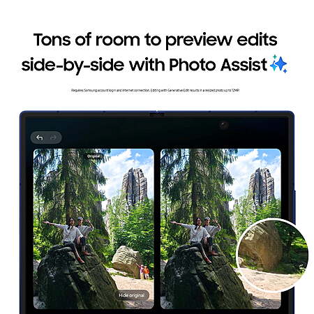 | Product Description: | Expand what’s possible with Galaxy Z Fold7, the foldable that’s designed to do so much more than before. The expanded 6.5" cover display* is made to feel like a traditional smartphone, making it more convenient to handle daily tasks — from text replies to checking the weather — without needing to unfold. For even more possibilities, open up the impressive 8" screen to create, unwind, multitask and more. For the first time ever for a foldable, Z Fold7 boasts a 200MP camera with ProVisual Engine so you can take stunning photos with ease. Perfecting your pics feels just as effortless. Enjoy plenty of room on the expansive inner screen to make tiny adjustments, like zooming in to delete that stranger in the background with Photo Assist* or ensuring everyone’s eyes are open in the group selfie with Best Face.* Whether you’re at home or on the go, creating on the large screen of Z Fold7 is as comfortable as it gets. View up to three windows at once* and edit your content on one side while streaming videos and scrolling social feeds on the other. While you multitask, the customized Snapdragon® 8 Elite processor for Galaxy* keeps your experiences smooth from start to finish. Plus, you can do it all without fear —Z Fold7 is crafted with time-tested durability that stands up to everyday wear and tear. Now that Gemini Live can analyze what you see, Z Fold7 also expands the ways AI can assist you. Simply open up Gemini Live, and then screenshare or point your camera at whatever interests you for additional info or answers on the fly.* Live life to the fullest — see more, do more and expand what’s possible with Galaxy Z Fold7. A cover display without compromise. With its expanded cover display,* you can comfortably use Galaxy Z Fold7 like a traditional phone when it’s closed and enjoy all the perks of a large screen when it’s open. Bigger, yet slimmer than ever. Galaxy Z Fold7 defies expectations with a wider design that’s also lighter and thinner than ever. Lightweight form. Heavyweight durability. With time-tested durability,* Galaxy Z Fold7 stands up to everyday wear and tear —open or closed. Best camera on a Fold yet. Elevate your photos with the 200MP camera on Galaxy Z Fold7. Finally, a foldable with ultra-level photo resolution. A big screen for big-time creativity. Create with ease wherever you please on the expansive inner screen of Galaxy Z Fold7. All the power and speed you need. Get your head in the game and stay locked in with the incredible power and speed of Galaxy Z Fold7. Expand the ways you stay ahead. With Now Brief1on Galaxy Z Fold7, you get to decide how to stay ahead. See your daily briefings at a glance on the cover screen, or unfold your phone for an expansive view. Screenshare for streamlined assistance. Intrigued by something you see? Open Gemini Live, then screenshare or point your camera at it for additional info or assistance on the fly.* More room to unleash the power of Gemini. Do more using less effort with an assist from Gemini* on an expanded outer display or an impressive inner screen. *LEGAL: Display measurements are diagonal, and actual viewable area is less due to rounded corners and camera hole punch. Requires Samsung account login and internet connection. Editing with Generative Edit results in a resized photo up to 12MP. Motion Photo must be turned on. Best Face captures a Motion Photo up to 3 seconds. Will identify and provide results for up to 5 people. Resulting image up to 12MP. Available with compatible apps. Snapdragon is a product of Qualcomm Technologies, Inc. and/or its subsidiaries. Compatible with select apps. Requires Google Gemini account. Results may vary based on input; check responses for accuracy. Google and Gemini are trademarks of Google LLC. Display measurements are diagonal, and actual viewable area is less due to rounded corners and camera hole punch. Tested and verified for at least 200,000 folds (or approximately10yearsof use). Based on average consumer folding behavior. Displays daily select information from select apps (some apps may require internet connection and/or consent to access data). Personal data intelligence must be enabled. |