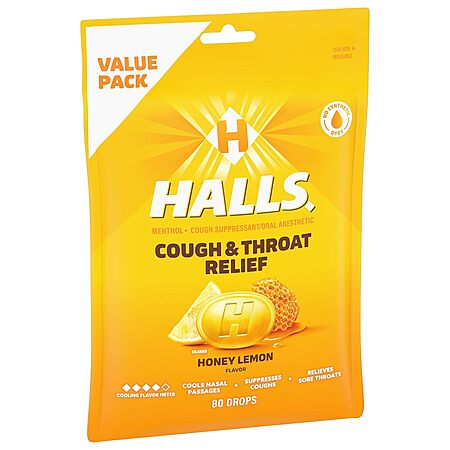 HALLS Relief Honey Lemon Cough Drops, Economy Pack, 80 Drops~$3.20 After Coupon & S&S @ Amazon