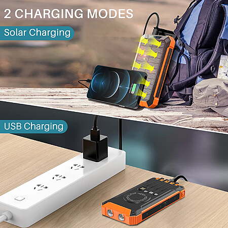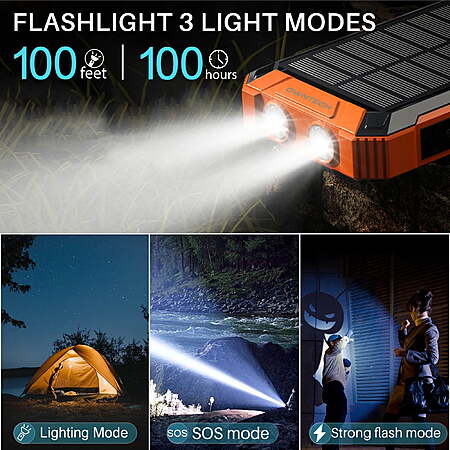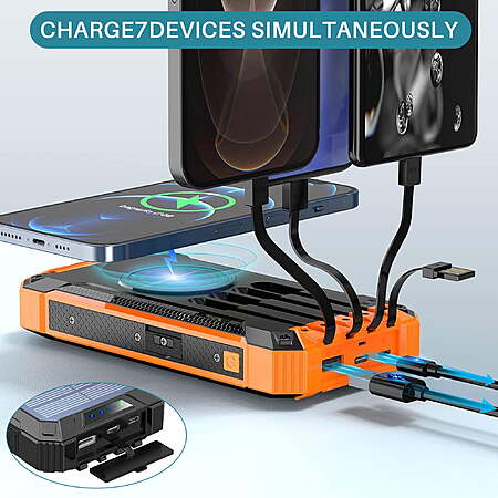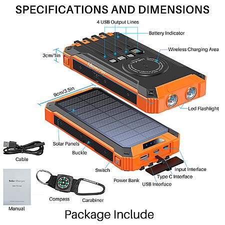 OWNTECH 30000mAh Portable Solar Charger for iPhone Android, Wireless Power Bank with 4 Charging Cables and 3 USB Port $26.02
