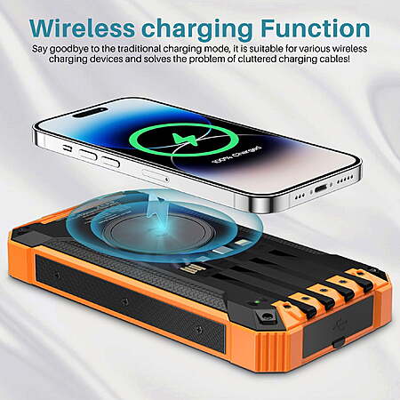 OWNTECH 30000mAh Portable Solar Charger for iPhone Android, Wireless Power Bank with 4 Charging Cables and 3 USB Port