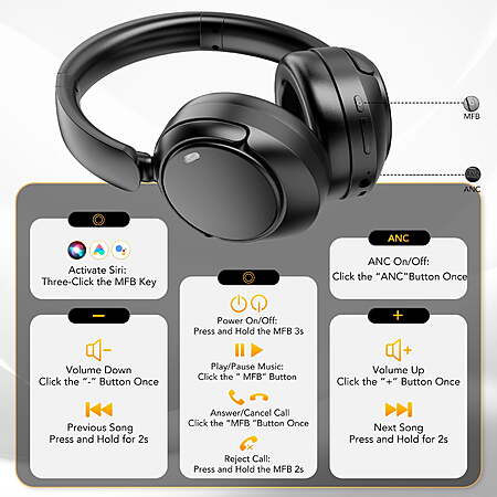 | Product Description: | About Our Team: IKT is a team dedicated to producing smartwatches, wireless bluetooth headphones, bluetooth speaker and other electronic products. In the 6 years since the brand was founded, we have dedicated ourselves to meeting our customers' needs for smartwatches with a variety of features. We truthfully publicize the quality of our products. We spend most of our time researching and designing stylish products and improving the inner quality of our products. We actively listen to consumer feedback and continuously improve our product quality and service level. In addition, starting from 2022, we have expanded and formed a professional electronic products department, such as bluetooth headphones, bluetooth speaker, power bank, wireless charger, bluetooth tracker tag, and so on. We opened our own supporting production factory with 50+ processes and 86+ test procedures to ensure product quality from the root. As of January 2025, our products have been sold to more than 20 countries, exported to more than 20 countries, and multi-platform sales have allowed us to harvest 200,000+ loyal fans. We will keep working hard to specialize in the category of electronic products and bring our users a pleasant shopping experience. 【-53dB Hybrid Active Noise Cancellation】Our engineers have optimized the 4 built-in ANC micrs and digital active noise cancellation algorithm in the headphones wireless bluetooth. They can capture and filter up to 90% of low-frequency and mid-frequency environmental noise, such as airplane and car engines. The -53dB deep noise cancellation ensures you won't be disturbed, allowing you to focus on listening to music (Note: ANC mode does not support the AUX cable). 【High-fidelity Sound Quality & High-resolution Audio】These noise canceling headphones feature oversized 40mm dynamic drivers. The highly flexible silk diaphragm reproduces powerful bass (up to 90% boost) and clear treble (up to 20kHz). 24-bit audio resolution separates sound frequencies into crisp, bright highs, rich, full mids, and detailed, elastic lows. Experience more sonic detail. 【60 Hrs Long Playtime】The H03 wireless headphones bluetooth feature a built-in 500mAh battery, offering up to 40 hrs of music playtime in noise-canceling mode and extending playtime to 60 hrs in standard Bluetooth mode. Equipped with a 3.5mm audio cable, the headphones wireless noise cancelling can easily switch to wired mode when powered off. Even when the battery is depleted, music can still be played via the AUX cable. Enjoy uninterrupted playback during travel or commuting. 【Clear Hands-free Calling】This noise cancelling headphones bluetooth isn't just a boon for music lovers. It's also a game-changer for remote work and everyday calls. Featuring CVC 8.0 beamforming audio signal processing and advanced AI noise reduction algorithms, it effectively filters out distracting keyboard clatter, background chatter, and traffic noise. Precision voice pickup delivers exceptionally clear call experiences. 【Wide Compatibility & Smart One-two】Adopts advanced Bluetooth 5.4 technology. Compared to Bluetooth 5.3, with 2X faster connection speed and signal stability, there is almost no screen delay, enjoy your videos and games. The bluetooth headphones over ear is compatible with iOS, Android and Windows. Two smart devices can connect to our H03 over ear headphones at the same time, allowing you to take calls from your phone while watching a movie on your tablet without having to switch! 【All-Day Comfort】Weighing just 220g, the headband incorporates a widened pressure-relief design. The ear cups feature an ergonomic oval full-coverage design paired with soft memory foam (slow rebound, high conformability, effectively dispersing pressure). They are soft against the skin and offer excellent breathability. The over ear wireless bluetooth headphones are also highly compatible with eyeglasses, with the ear cups accommodating temples comfortably. Perfect for long journeys and office use. 【Safe Transparency Mode】The transparency mode of the bluetooth headset will bring you a new concept of sound - music doesn't have to exist in a vacuum, it can breathe and interact with the world. By turning on the transparency mode, outside sounds can coexist with your music. You won't be cut off from the outside world and can talk to people accurately and easily. 【360° Spatial Surround Sound】The H03 over ear bluetooth headphones utilize multi-channel layered rendering and head-tracking technology.This creates a virtual spatial audio environment with width, height, and depth, enabling precise sound localization across multiple dimensions.The over ear headset detect even the slightest head movements in real-time, intelligently adjusting the soundstage direction to deliver an immersive, enveloping audio experience. 【Individually Convenient Button Controls】 Use the intuitive buttons on the H03 wireless headphones to control your music. You can easily access functions such as play/pause music, switch songs, volume +/-, answer/hang up calls and activate the voice assistant. Under bluetooth connection status, click the ANC button to freely switch between ANC mode, bluetooth mode and transparency mode. 【Stylish Gifts and Quality Customer Service】This wireless bluetooth noise canceling headphones has a fashionable design and rich and practical functions to make your daily life more convenient. Perfect gift for birthdays, anniversaries and special occasions. Package includes foldable over ear headphones wireless, 3.5mm spare audio cable, USB charging cable and user manual. We offer 30 days return and 12 months warranty. We encourage you to contact us with any product questions or suggestions. 【You May Want to Know】 Question 1: How to connect H03 wireless headphones noise cancelling to my device? Turn on the wireless headset first: then turn on the Bluetooth on your device, search to find a nearby Bluetooth n