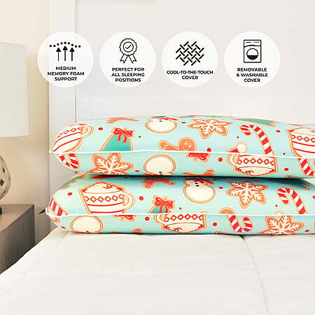 2-pack Imaginarium Memory Foam Fun Pillow with Cool-to-the-Touch Cover, Standard/Queen, Christmas Cookie or Holly Jolly Blue $20