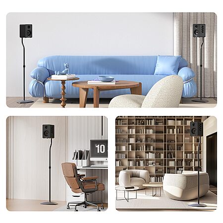 - 【Rock Solid Stability】 As a trinity of sturdy metal pole, weighted base, and anti-slip pads, the rear speaker stands make speakers stay put-even when your playlist gets rowdy; Pads protect carpet or tile flooring. Each stand supports up to 11lbs—ideal for small home audio systems.