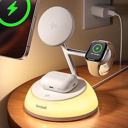 Qi2 15W 4-in-1 Magsafe Wireless Charging Station Multi-Color Light, for iPhone 17 16 15 14 13 Series, Apple Watch, Airpods $22.49