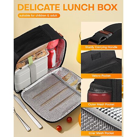 7L HOTOR Insulated Lunch Bag w/ Pocket (Black) $3.49 + Free Shipping w/ Prime or on $35+