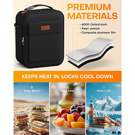 HOTOR via Amazon [amazon.com] has for Prime Members: 7L HOTOR Insulated Lunch Bag w/ Pocket (Black)(9.06" x 4.33" x 10.63") on sale for $6.99 - 50% off when you enter the coupon code OUAEOB8G =$3.49. Shipping is free w/ Prime or on $35+.