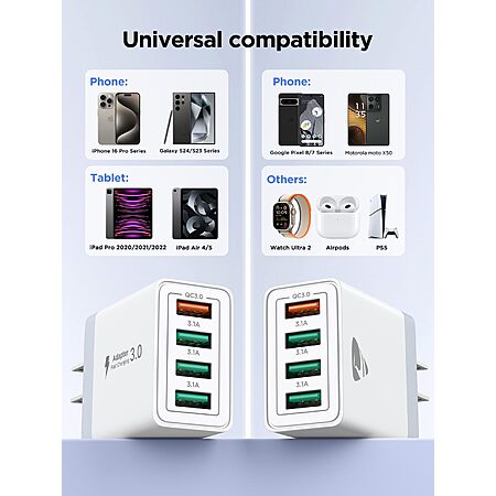Model: USB Wall Charger Block, 2-Pack 40W 4-Port USB Cube Power Adapter Plug, Multiport Charging Blocks Box Brick for iPhone 16 15 14 13 12 11 Pro Max XR Xs Max 8 7 6 Plus, Samsung, LG, Moto, Android Phones