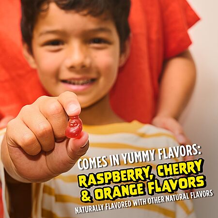- Each bottle contains gummies in three assorted fruit flavors: natural raspberry, cherry, and orange with other natural flavors.