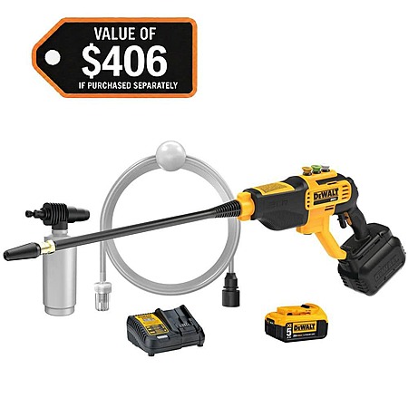 DEWALT 20V MAX 550 PSI 1.0 GPM Cold Water Cordless Battery Power Cleaner with 4 Nozzles Kit with (1) 5 Ah Battery and Charger, $199, FS, Home Depot