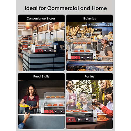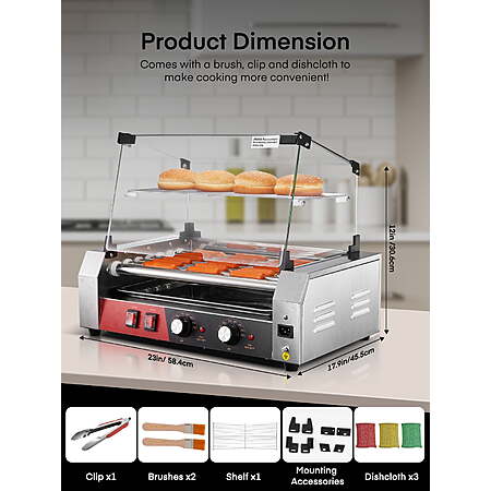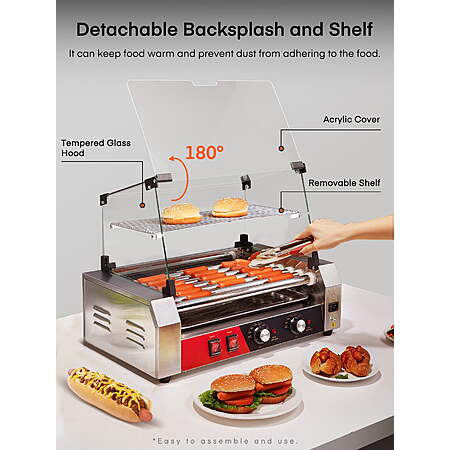 $126 or less*:FOHERE Electric Hot Dog Roller, 18-24 Hot Hogs, 7 Roller Grill Cooker Machine Backsplash & Shelf 1050W at Walmart.com