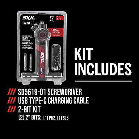 SKIL SD5619-01 Cordless 4V Twist Electric Screwdriver with Pivoting Head with 2 Piece Bit Kit and USB Charging Cable $22.99