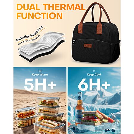 - KEEP WARM & COOL: Built with a dual-insulation design, this women's lunch bag for work keeps both hot meals and cold drinks at the perfect temperature. Thanks to its advanced thermal lining, the food stays fresh for 5 to 6 hours without the need for a microwave or fridge. Enjoy your favorite meals anytime, anywhere.