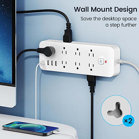 | Product Description: | Meromore Power Strip with Heavy Duty 10ft Extension Long Cord The thicker Copper Wires for stronger, high conductivity, more efficient power output, low heat & safer. A tough coated power cable withstands pressure for enhanced safety and longevity. 1875 Joules surge pretector power strip with 13 outlets and 4 USB charging ports meet home appliances and mobile device. You can charge 17 electric devices at same time. 4 USB ports total 3 A/5V, each USB A port features 2.4A Max output can charge almost any USB device (smartphone, tablet, Kindle, fire stick, e-reader, bluetooth headphones, portable speaker etc) 45° Flat Plug design: The 45° flat plug design makes the device more convenient to use and will not affect the use of other devices while using this product. Suitable for installing behind sofa, wardrobe, bookshelves, and other furniture. Unique Wall Mount Design - wall power strip can be installed anywhere, with the special design can fix more firmly. For your safety, it is not suitable for the device which rated power above 1875W. Power Supply AC 100-240V 50/60Hz Rated Power: 1875W -10A max USB Charger: DC 5V 2.4A each port, Cord Length: 10 ft/3m Dimension: 9.4 x 3.1 x 1.4 inches 18 in 1 Black Power Strip: This flat power strip 10ft could turn 1 socket into 13 AC outlets and 4 USB ports, can charge 17devices simultaneously without blocking, keep your desktop organized; You can use it in any indoor place such as home, office and dorm room. Flat Extension Cord: With only 1.1in ultra thin flat head design, flat power strip can easily fit in tight spots and hide behind sofa, bed, nightstand or other furniture, sitting flush against the wall; 45 right angle design create an extra space for other plug below without blocking. 1875J Surge Protector Tower: Equipped with overload protection, short-circuit protection, over-current protection, and etc; Reliable on/ off switch can automatically shut off and protect your expensive electronics, providing you with a safe and reliable charging environment. Safe and Durable Construction: Compact design supports simultaneous charging of multiple devices, saves space, and organizes your desktop. The power strip features a flame-retardant phosphor copper wire cord and PC & ABS shell. It includes premium circuits with protection against corrosion, overheating, overloading, overcharging, and short circuits. Wall Mountable Design: 2 mounting holes allows you to securely install this power strip in various applications, such as workbenches, wall mounts, floor mounts, under counters and more. |
