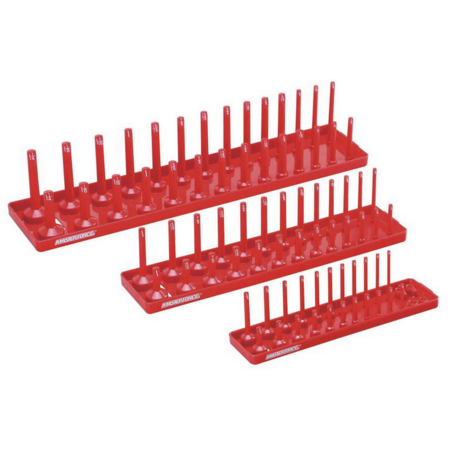 -SAE: (1) 1/2" drive tray, 3/8"-1-1/4"; (1) 3/8" drive tray, 1/4"-1"; (1) 1/4" drive tray, 1/8"-5/8"