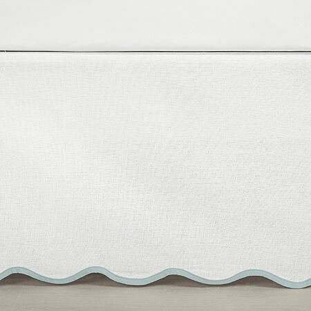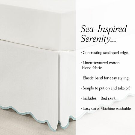Lush Decor Coastal Chic Scalloped Edge Linen-Textured Bed Skirt Single, Queen Blue & White - White Bed Skirt Queen Size - Coastal Decor - Wrap Around Bed Skirt $13.74