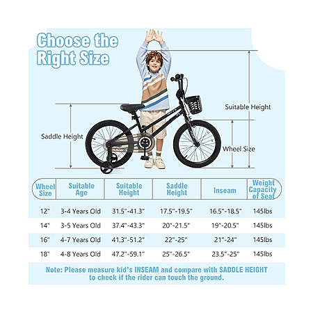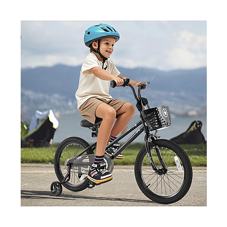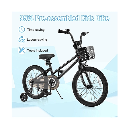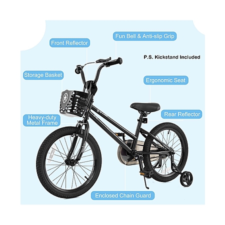 Sugift 18-Inch Kids Bike with Basket and Training Wheels for Ages 4-8 - Black $150.9