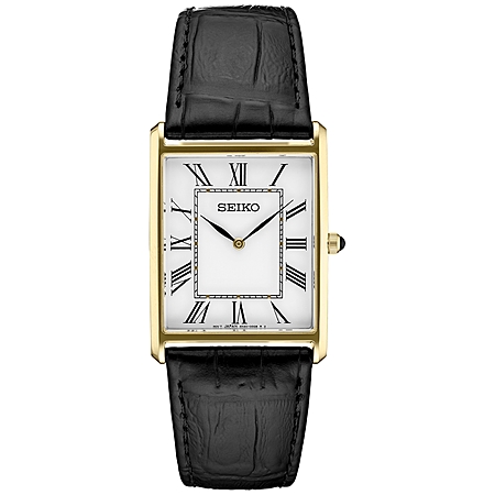 Seiko Men's Essentials Black Leather Strap Watch 28mm - Gold $180