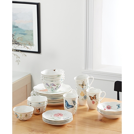 Lenox Butterfly Meadow 37 Pc. Tea & Dessert Set, Service for 8, Exclusively at Macy's - White Body W/multicolor Floral and Botan $352