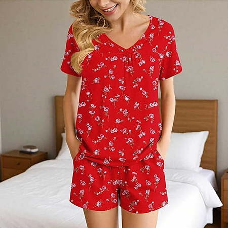 Valentine's Day Women's Knit Henley Top and Shorts Pajama Set from Way to Celebrate, 2-Piece, Sizes XS-3X (4 options) - from $8.37