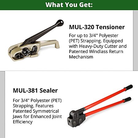 IDL Packaging PRO Strapping Tool Set for 3/4" Polyester (PET) Strapping – Teknika MUL-320 Tensioner and MUL-381 Sealer $444.15