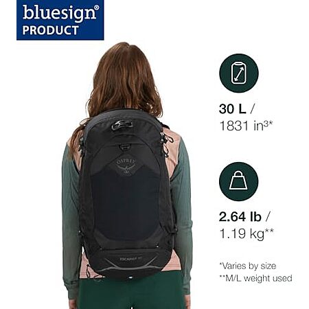 $107.93 | Osprey Escapist 30L Biking Backpack, Black, Medium/Large at Amazon