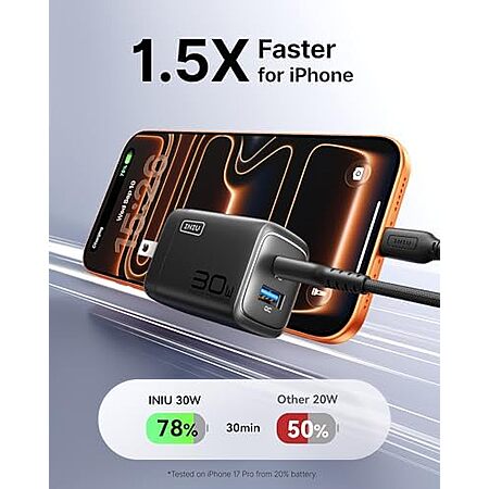 [AC] $8.40* | 2-Pack INIU Up to 30W PD Fast Charging USB-C Charger Block (USB-C + USB-A; Black) at Amazon