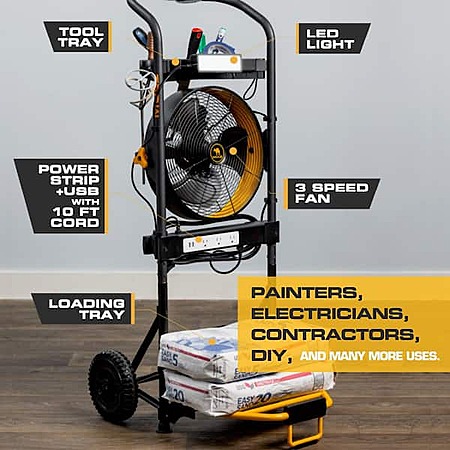 MULE 5-in-1 Mobile Workshop Integrated 3-Speed Fan LED Light Power Strip Tool Caddy and 300 lbs. Capacity Hand Truck $99